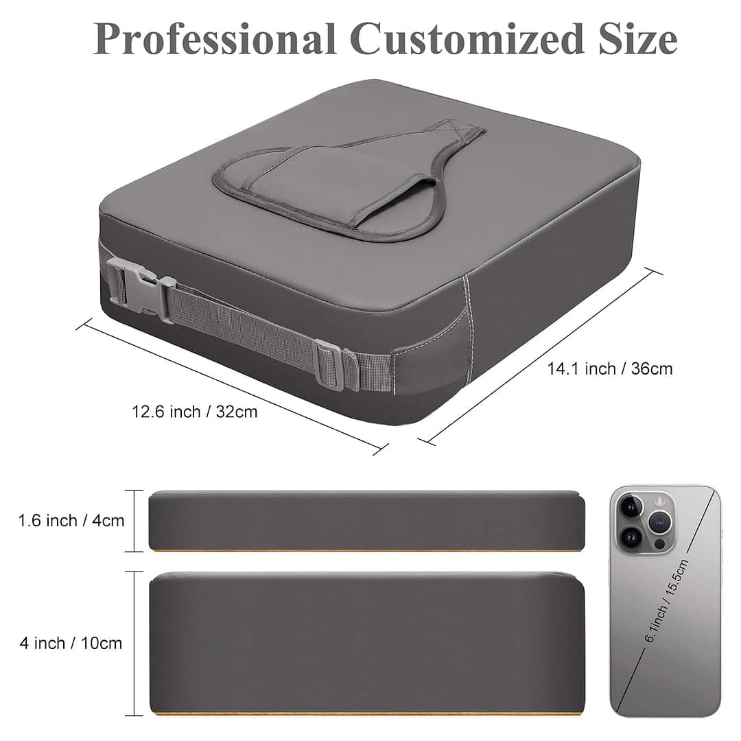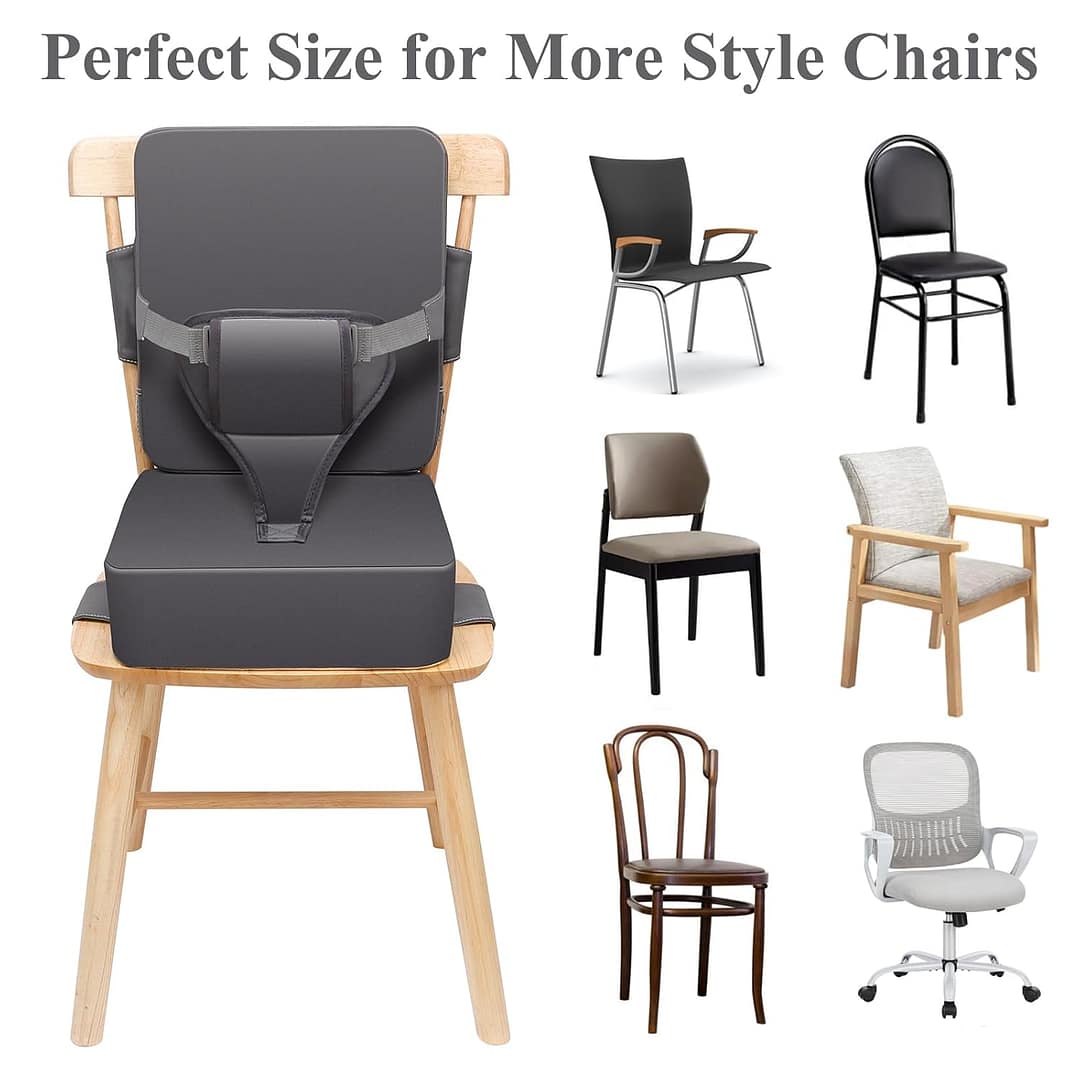 - 【Booster Seat Suitable Size】The baby booster seat has a backrest size of 14.1×12.6 x 1.6 inches and a cushion size of 14.1 x 12.6 x 4 inches, specifically designed for most dining seats. At the same time, the length of the bottom seat belt is appropriately increase, so the cushion can be better fixed on the most dining chair.
